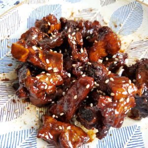 起锅,加白糖炒至融化后倒入排骨上糖色