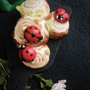 树桩的地方:可可粉兑水刷上去,瓢虫馒头就做好啦