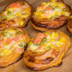 准备馅心:杂菜粒焯水后冷却,拌入马苏里拉奶酪和色拉酱,备用。