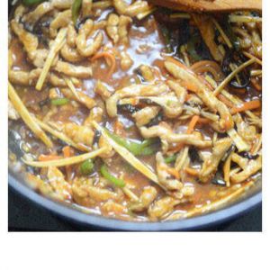 里脊肉切粗丝加入适量盐,料酒和水淀粉腌制,倒少许油搅拌均匀,木耳,笋,青椒,胡萝卜切丝,葱姜蒜切末备用