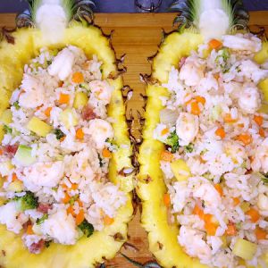 香喷喷出炉,味道就不用说了,菠萝味浓厚,酸甜可口,还有腊肠的香味,加上大虾、西兰花的营养,给孩子吃不停口