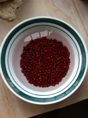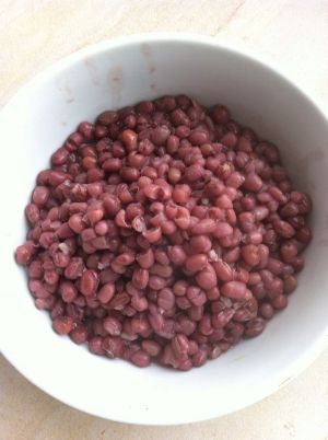 高压锅加刚好没过红豆的水煮十分钟,图片为煮好的红豆。