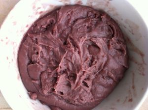 用搅拌机将煮好的红豆搅拌成泥,图片是搅拌好的红豆泥。