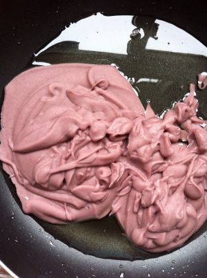 锅内加油、白砂糖,开火后不停的搅拌使油和糖与豆泥充分融合,至豆泥开始冒小泡泡后3分钟关火。