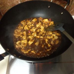 豆腐入味可以出锅,我没有放盐,刚开始已经用盐水煮过,酱料也很有味道,不需要再放盐了,为了颜色好看,可以多放些辣椒油。