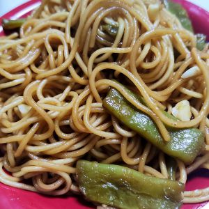 平时一般不放这两种调料,今天放了也很好吃。继续闷扁豆到快熟放盐。翻炒一下待面条下锅。
