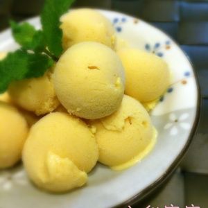 将冷藏好的芒果泥倒入蛋液中,用料理棒均匀的拌匀成冰淇淋糊。然后放冰箱急冻室,每隔一小时就拿出来搅拌一下,这样重复四次(这是冰淇淋做出来口感是否细腻的最关键的步骤,真的不能省)