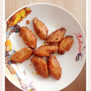 取出鸡翅,在表面刷一层蜂蜜,再刷一层香油,放入继续转1分钟。再取出翻面同样刷料转1分钟。鸡翅就烤好啦!
