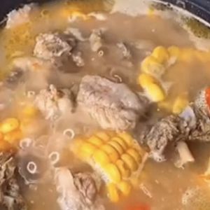 放入玉米,胡萝卜,排骨,倒入开水小火炖40分钟