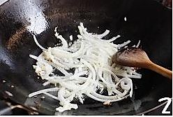 起锅做少量的油,爆香蒜末和洋葱丝.