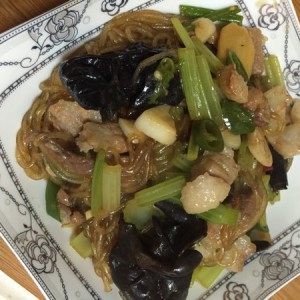 然后添加一碗小碗水,水开后放入泡好的粉条,煮大概三分钟左右,尝一下甜咸,自己斟酌放不放盐,想吃带汤的就不要煮的那么久。