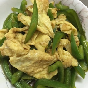 然后倒入煎好的鸡蛋,倒入一点酱油,即可装盘