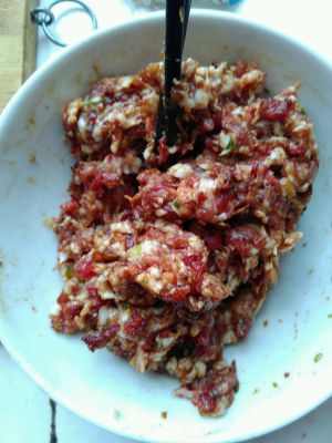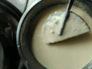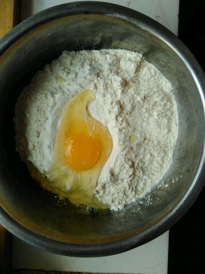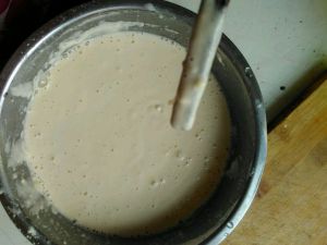 慢慢倒入水,边倒水边搅拌,要稍微稠一点的