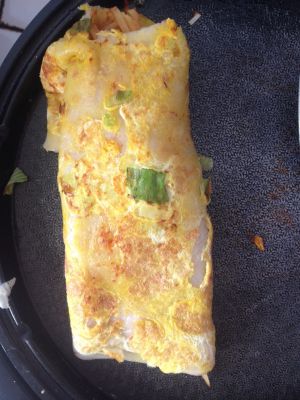 一颗鸡蛋,这个是准备煎饼成型时打在上面的。