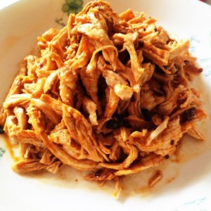 鸡胸肉白水煮熟。不要煮时间过长。如果掌握不好可以用剪刀剪开看中间是不是都变成白色。煮熟之后放入冰水里备用
