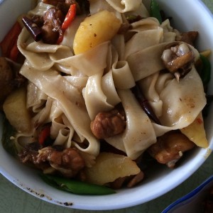 被诱惑到的大盘鸡,缺少了裤带面,连我这个不怎么吃面的人这次都吃了三根,面团一定要柔软出来的面才会好吃,而且会很好拉扯成裤带面
