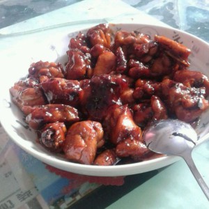 炖制中要翻锅两次(以防粘锅),炖制大约十分钟左右,汁收到粘稠状态后可以出锅了。
