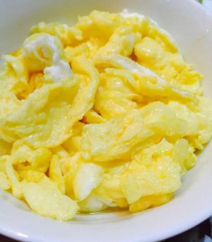 鸡蛋打匀,放少量盐,加点水。然后放锅里煎成块状盛起备用