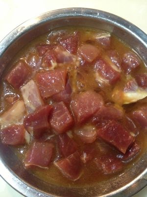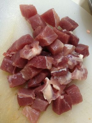 瘦肉切粒 加少许盐调味
