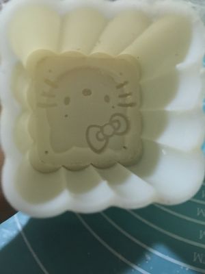 月饼模放入少许糕粉,转圈把粉磕出来