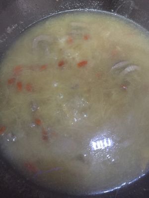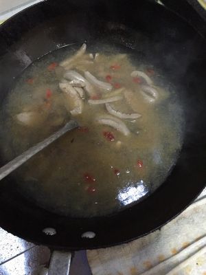 倒入温水,加入适量的枸杞,盖上锅盖。滚个几分钟。