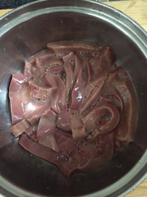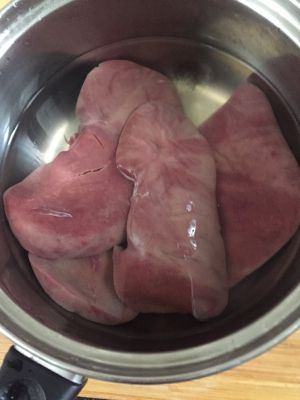 切成麻花状,用盐水泡洗,去除尿骚味。洗净(多洗几遍到去除血水。)