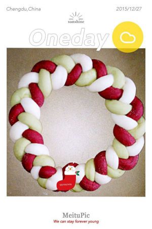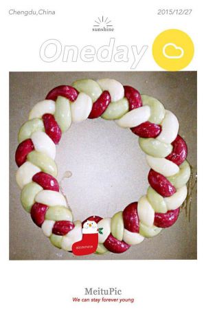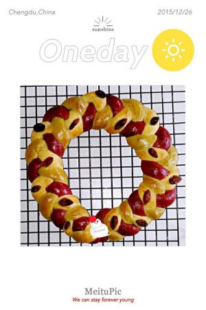 (用二分之一的面团做的圣诞花环面包,剩下的面团做的----我的圣诞烘焙系列之五,圣诞老人面包)
