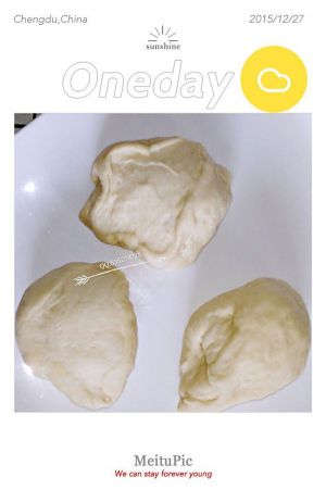 每个面团平均分割成2个面团,共计6个小面团,滚圆,盖上保鲜膜松弛15-20分钟。