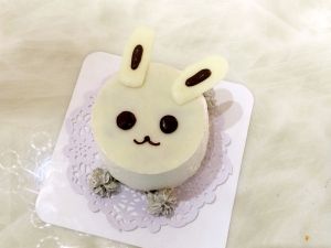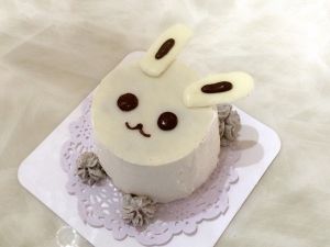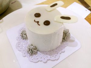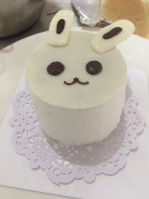 把做好的白兔子放在蛋糕上,盖住黑芝麻奶油!