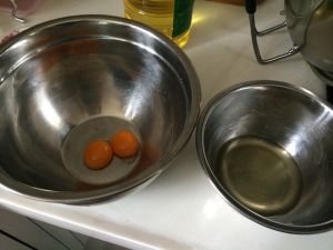 制作戚风蛋糕胚:将2个鸡蛋蛋白蛋黄分离。