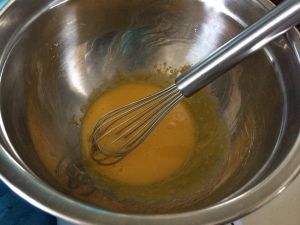 蛋黄中加入13g白糖搅打均匀,再加入13g大豆油搅拌至乳化。