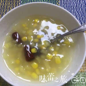 准备小锅,水煮玉米粒,我的玉米粒是从超市买的现成的。水不要很多,盖过玉米粒有1.5厘米左右就OK。
