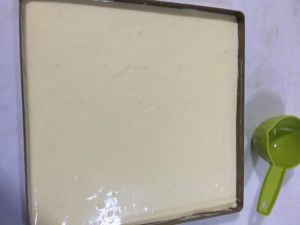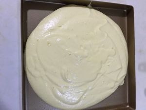 16、用刮板抹匀,放入预热好的烤箱中层,180度烤20分钟