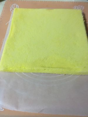 铺好油纸,将深色一面向下,抹上打发好的奶油