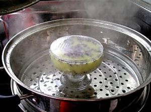 蒙上保鲜膜,大火上锅蒸,15分钟即可出锅。