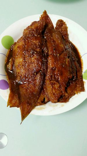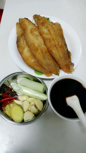 加热锅中煎鱼剩下的油,把葱姜蒜,辣椒,大料加入锅中翻炒片刻加入碗汁!汤汁烧开后,把鱼依次加入锅中!
