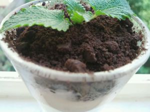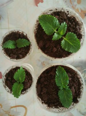 倒上“奥利奥泥土”装饰上薄荷。