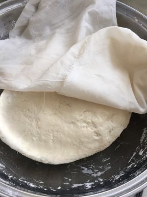 提前1小时和好面,冬天最好用温水和面。用一块湿布盖好面团。