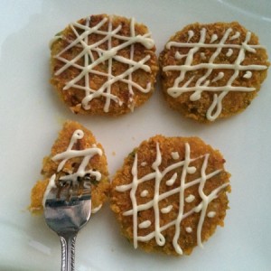 把1、2、3、步所有材料,加入盐、咖喱粉拌匀,土豆捏成泥。