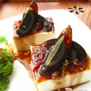 将豆腐放入加了盐的开水中泡上两, 三分钟;