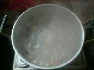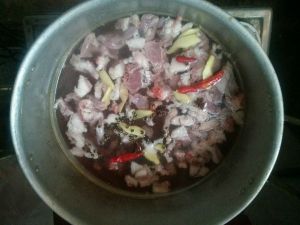 放入锅中,加足水,放上花椒,大料,葱,姜辣椒。