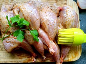把汁刷上鹌鹑,记得刷肚子里面哦