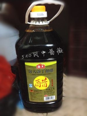 我买了海天的,4.9公斤(因为我的煲好大,平时自己吃的不用买那么多,后期需要继续煲开时候会干水,需要不断添加醋),猪脚若干和鸡蛋。