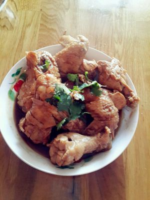 拣出鸡翅,把汤汁淋到上面,可以吃了。