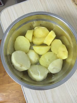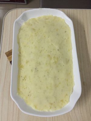 用勺子压成泥加入2g盐和胡椒粉和50ml牛奶搅拌均匀。