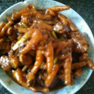 鸡爪放开水中过一下,有浮沫出现就可以捞出了
