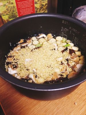 跳档后加盐,不必再加鸡精啦,水加的不多,加上小米非常黏,所以非常稠,可以酌量多加水~