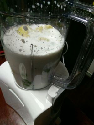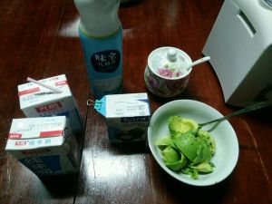 牛油果对半切,果肉挖出。准备好牛奶椰浆。没有椰浆的朋友可以忽略。酸奶楼主最后也没有加。