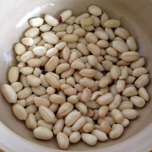 砂锅用小火烧热,倒入少许橄榄油润锅,倒入花生仁,翻炒均匀,花生仁铺底;