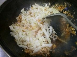 鸡蛋炒碎放入白菜叶